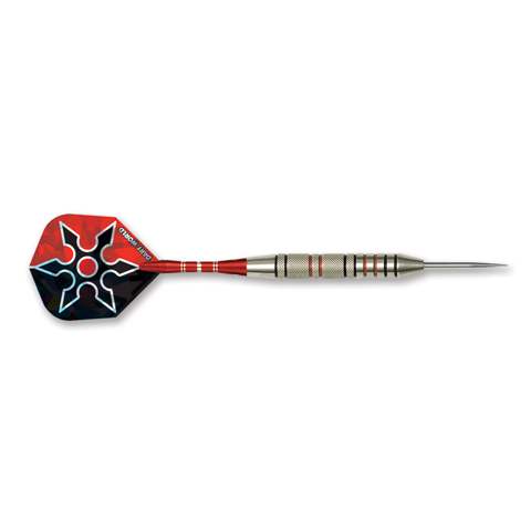 The Ninja dart is made from highly polished nickel silver and has a variety of grips to accommodate the needs of all players. This dart is complemented with matching flights and Colormaster shafts.